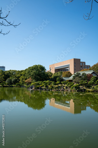 © jyapa, Obraz premium 冬の清澄庭園と青空の風景