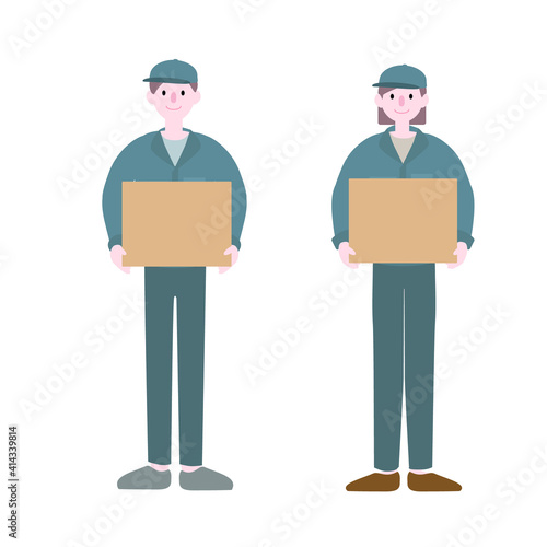 Obraz premium ダンボールを配達してくれる人イラスト素材