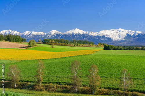 Obraz premium 美瑛 冠雪の十勝岳連峰