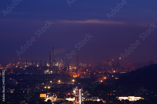 © HIDEKAZU, Fototapeta premium 煙に包まれる街の夜景