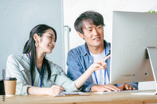 © buritora, Obraz premium オフィスでミーティングする男女の会社員