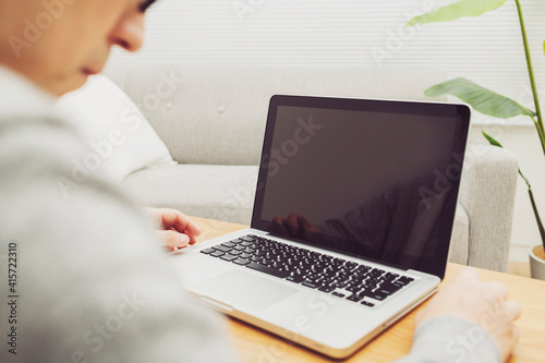 Fototapeta premium 自宅のリビングでテレワークしている男性