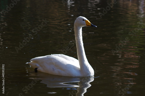 Naklejka premium 厳しい寒さを避けて越冬で飛来地へと渡ってきた、美しい白い羽毛のオオハクチョウ