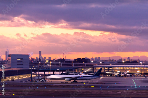 © KoZ, Fototapeta premium ジェット機と夕景