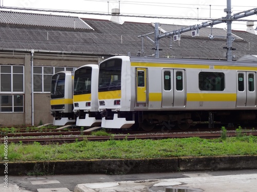 © Tachikawa310, Obraz premium 車庫に止まっている電車