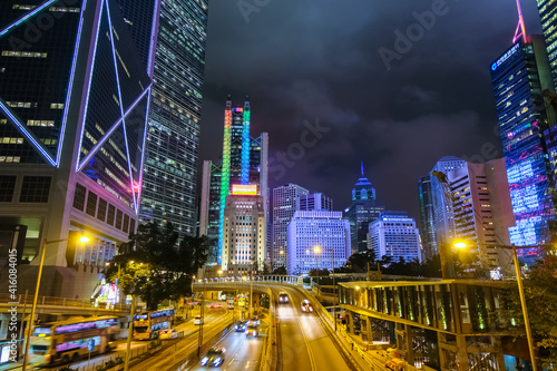 Fototapeta premium 香港 中環(セントラル) 高層ビル群 夜景 曇天