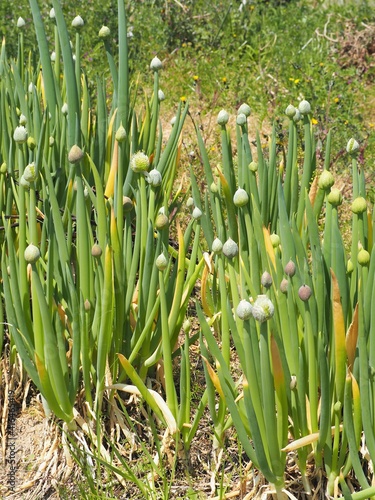 © poteco, Obraz premium 春の畑で成長するネギ坊主