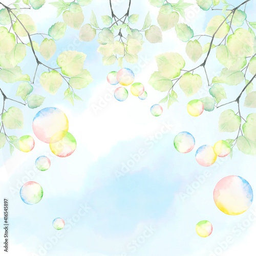 Fototapeta premium シャボン玉が飛ぶ緑の風景