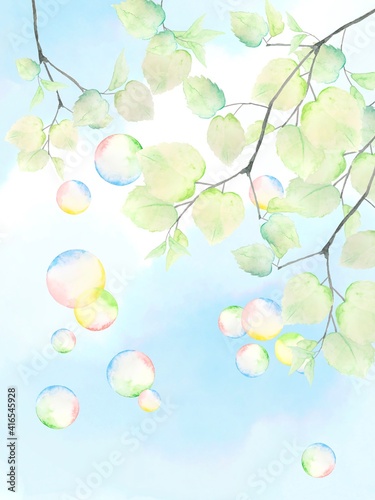 Fototapeta premium シャボン玉が飛ぶ緑の風景