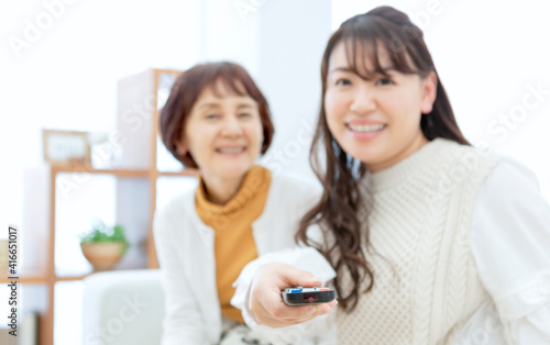 Fototapeta premium テレビを見る親子