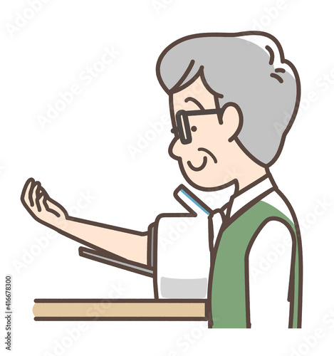 Obraz premium 血圧を測定するおじいさん 上腕式測定機