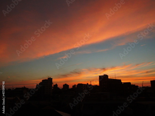 Fototapeta premium 夕焼け 建物のシルエット 雲の塊