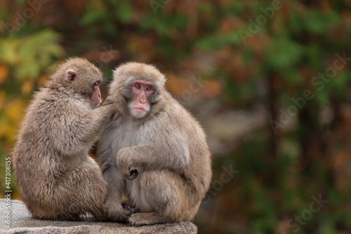 © rai, Obraz premium 仲良しなニホンザル