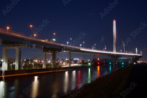 Fototapeta premium 葛飾ハープ橋のある風景 夜景