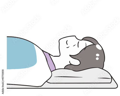 Fototapeta premium 寝る 横向き 布団 高齢女性 上半身