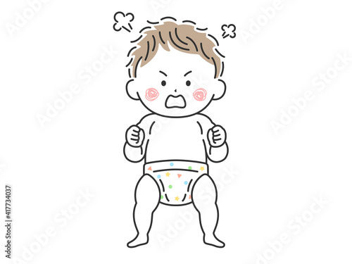 Obraz premium 立っている不機嫌な赤ちゃんのイラスト