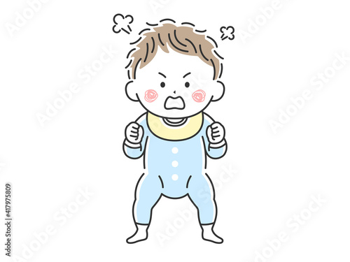 Obraz premium 立っている不機嫌な赤ちゃんのイラスト