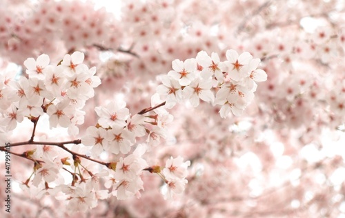 Obraz premium 美しい桜の花、日本の春の風景、ソメイヨシノ、背景素材