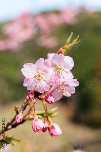 Obraz premium 河津桜 接写 見帰りの滝付近 佐賀県唐津市
