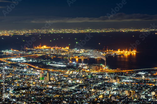 Obraz premium 日本三大夜景 摩耶山掬星台からの1000万ドルの夜景