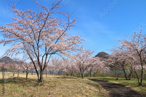 Obraz premium 七ヶ宿ダム自然休養公園・七ヶ宿湖の桜 (宮城県七ヶ宿町)