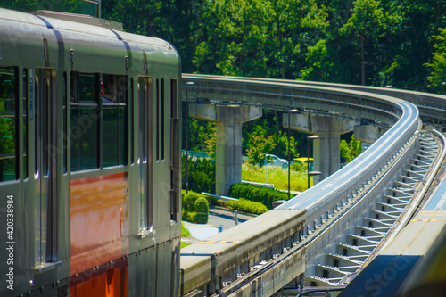 © kanzilyou, Naklejka premium 多摩都市モノレールと新緑