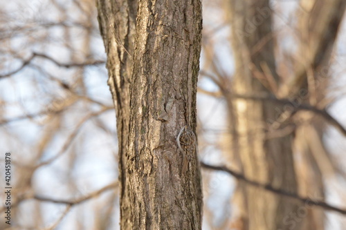 © 弘也 齋藤, Fototapeta premium 真冬の北海道の森の中、餌を探すキバシリ