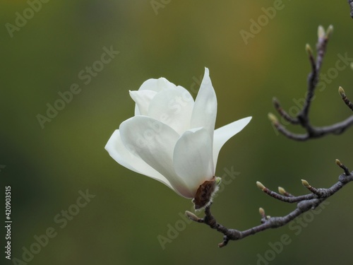 © Scott Mirror, Obraz premium グリーンバックに咲くちょうど見頃のハクモクレンの花
