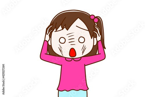 Obraz premium 白目になってどうしようか頭を抱えて慌てる少女
