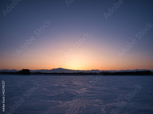 Naklejka premium 雪原と夕焼け