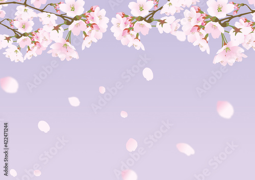 Fototapeta premium 桜の花と降り注ぐ散る花びら背景パステルカラー紫