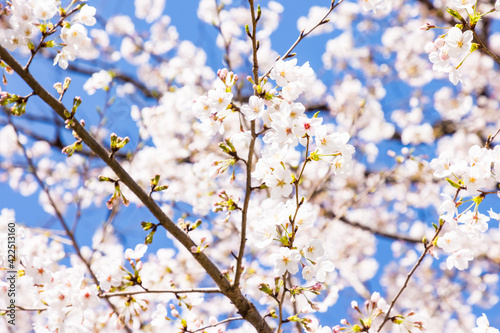 © MOCOHA IMAGE, Obraz premium (自然ー花)青空とさくらの花びら4