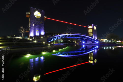 © HIDEKAZU, Obraz premium 運河にあるライトアップされた橋