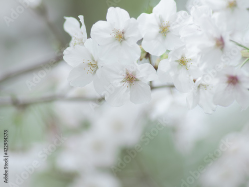 Obraz premium 薄曇りの日の淡い桜の花 3月