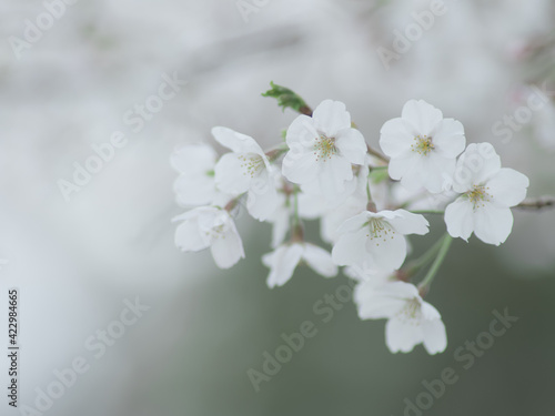 Obraz premium 薄曇りの日の淡い桜の花 3月