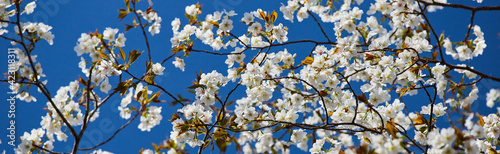 © zheng qiang, Fototapeta premium ワイド幅撮影した春の満開の桜の花と綺麗な青空の風景