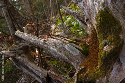 © Masa Tsuchiya, Obraz premium 原生林のねじ曲がった倒木。