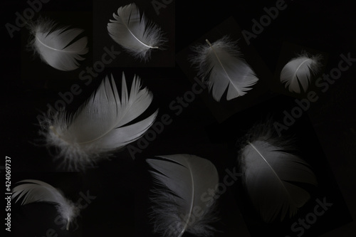© cat_smile, Obraz premium 黒背景の白鳥の羽根