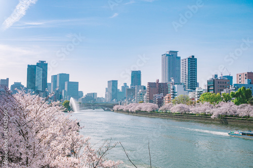 © Nuku, Naklejka premium 春の大阪の街並み(大川の桜)