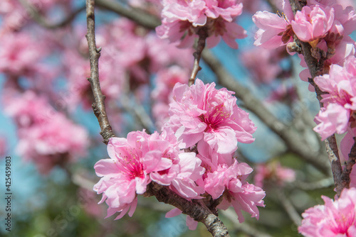 Fototapeta premium 美しいハナモモのクローズアップ(鳥取県)