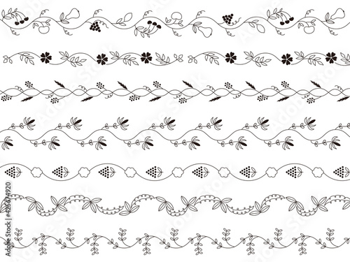 Obraz premium 花をモチーフにした、フォークアートの飾り罫セット