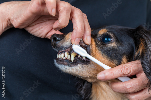 © captainT, Obraz premium 愛犬の歯を歯ブラシを使って磨く