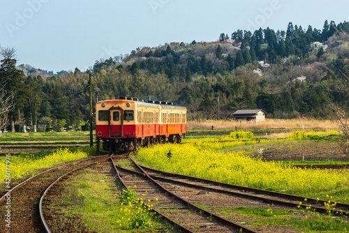 © Umibozze, Naklejka premium 房総半島小湊鐡道 桜と菜の花、上総久保駅付近