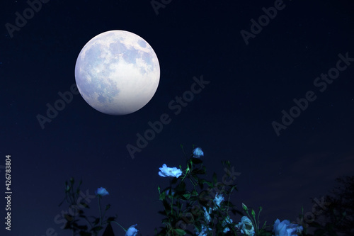 © Seiichi Fukui, Fototapeta premium 月が青いバラの花を照らす
