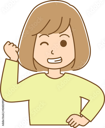 Obraz premium ガッツポーズをしている女性のイラスト