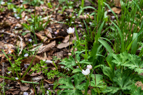 Obraz premium 林業試験場樹木公園に咲くニリンソウ