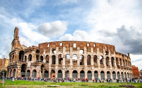 Fototapeta premium イタリアローマ、古代ローマ建築の傑作 世界遺産コロッセオ