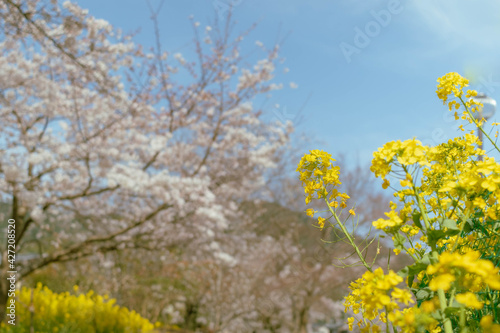 Fototapeta premium 満開の菜の花と桜咲く春の自然風景