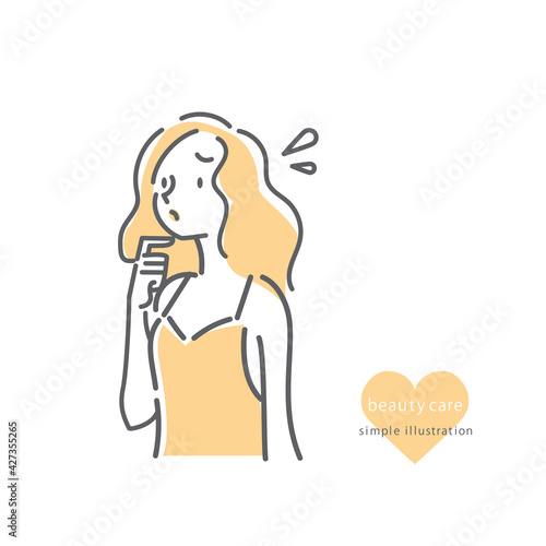 Obraz premium キャミソール姿の女性のシンプルでナチュラルな線画イラスト 髪の悩み