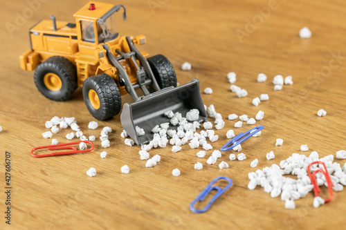 Fototapeta premium 散らかったデスクを掃除するホイールローダー